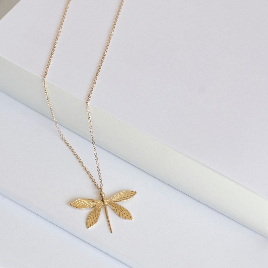 Cette libellule finement ciselée illumine votre décolleté de par son éclat doré. Montée sur une chaîne délicate, elle apporte une touche de raffinement naturel et intemporel à votre style.