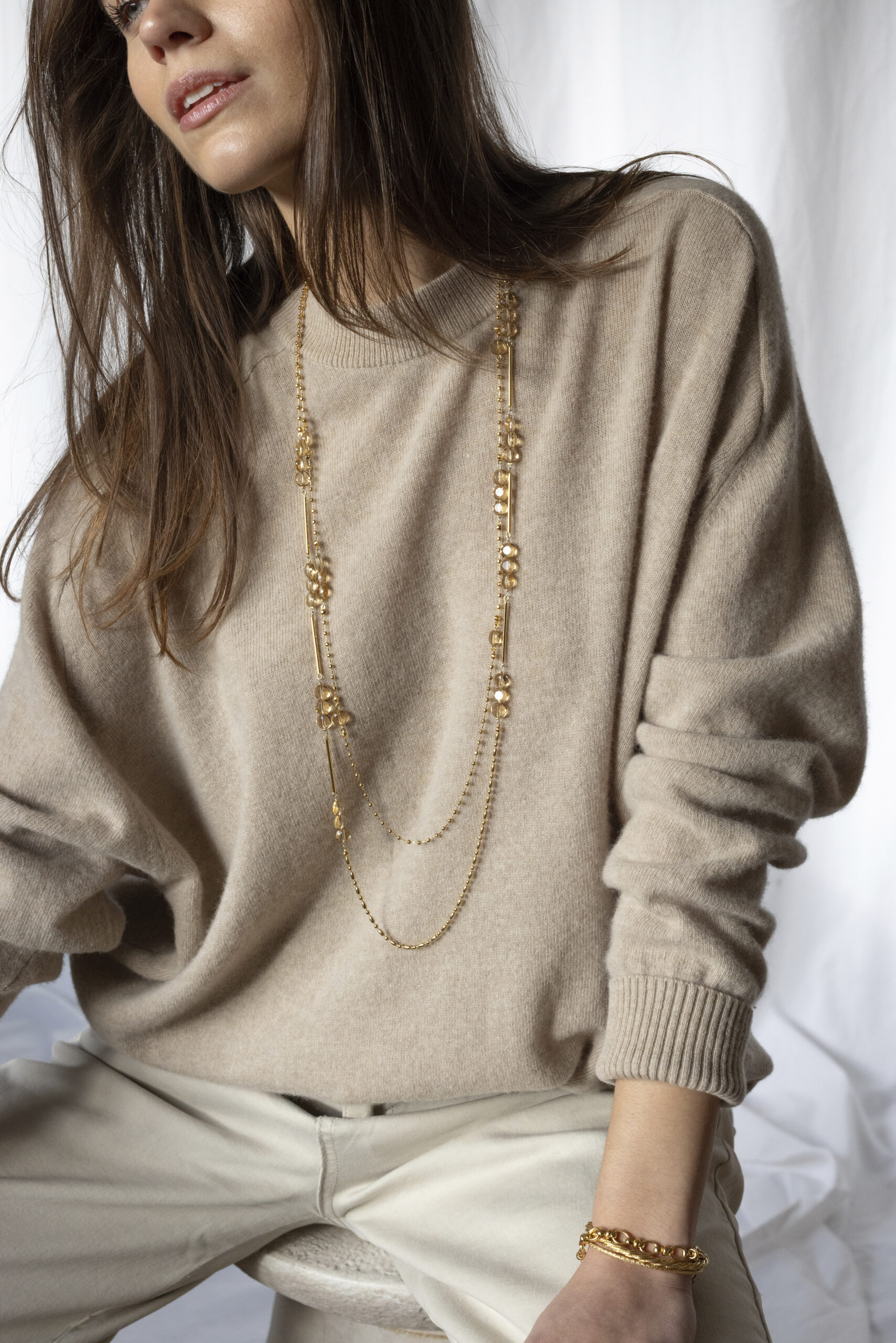 Deux colliers fins, à porter seuls ou superposés. Un jeu discret de perles lumineuses et de maillons dorés, pour une allure élégante et modulable au quotidien.